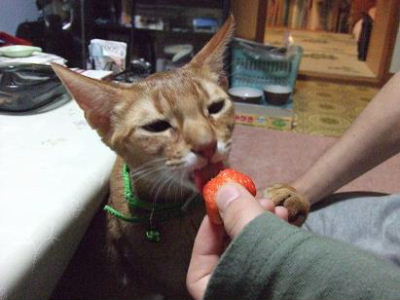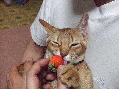 イチゴ、そろそろ取り上げようと思ったら、気配を感じたのかこの通りです。ったくう!