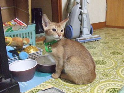 ネコ(アビシニアン)、スナネズミ、魚(タナゴ、モツギョ、金魚)、亀(ミドリガメx2)