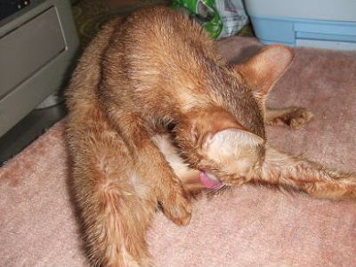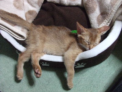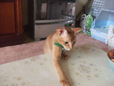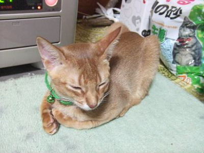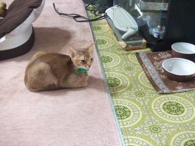 その頃、睦月さんはというと・・・。皿がカラッポな事をさりげな~くアピールしてます。この時期の猫、一日で70cc位の量のゴハンが摂取目安のようですが、睦月の要求に従うと軽く140ccを越えてしまうので、飼い主も無い智慧を絞って給餌しています。アビシニアンがデブシニアンになっては大変!でも、他のアビシニアンを飼っている方はどの位の給餌をされているのかなぁ?飼っている方がもしこのブログをご覧になっていたら、教えて頂けたら嬉しいです。