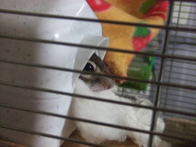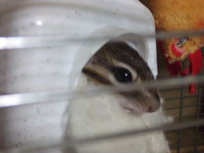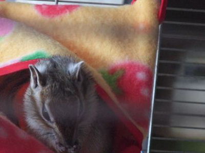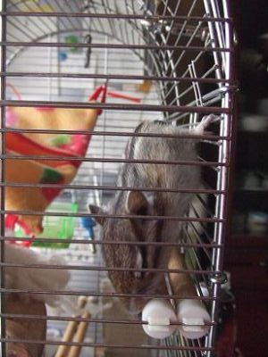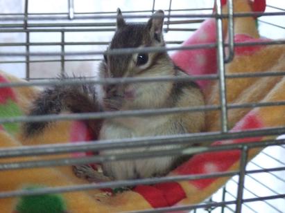 一方、その頃のクーはハンモックの上でパンダ座りをしてお食事中で、足を投げ出すリスの姿を初めて見せてくれました。(でもやっぱりタ〇タ〇が見えない~!)