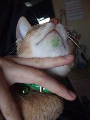 ひょっと見ると顎の下が緑色になってました。(もう絶対にお嫁に行けないね)