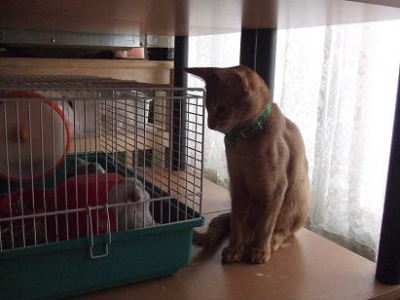 ネコ(アビシニアン)、スナネズミ、魚(タナゴ、モツギョ、金魚)、亀(ミドリガメx2)
