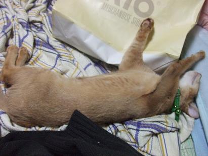 でもさっき覗いたら、子供部屋でこの有様!タオルケットを咥えて引きずり回して大暴れして、そのままバタンキューした模様です。子猫って、突然電池が切れたみたいに眠ってしまうのがかわいいです。