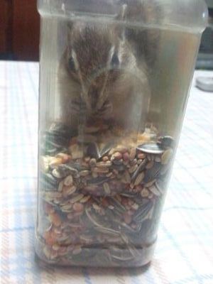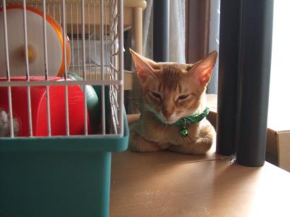 私 で、良く観察したらさ、檻の近くにミズゴケの生えた水入れが落ちてるし、檻の中にはひまわりの種の殻が3個分落ちてるだけで、水入れのコケの生え方見たら、どう考えても3~4日はそこにいたみたいでさ