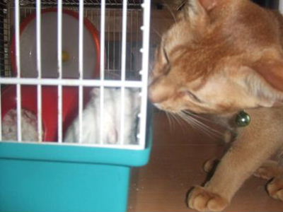 ネコ(アビシニアン)、スナネズミ、魚(タナゴ、モツギョ、金魚)、亀(ミドリガメx2)
