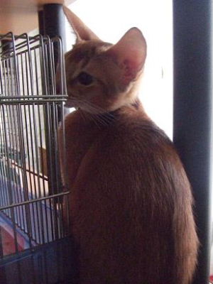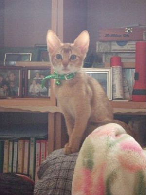 ヒトの肩の上で、モデル座りしたTPOをわきまえないバカ猫お嬢さん。気が付いたけど動けない~!
