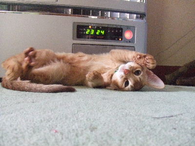 超可愛いポーズで、「おかん、こっちおいでニャン」と声をかけているみたいですが