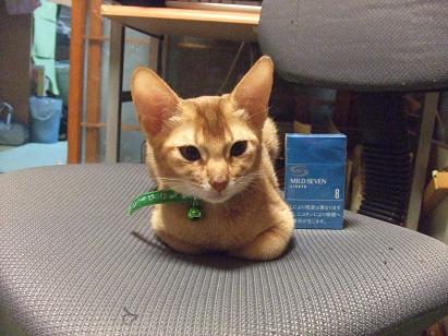 夜、珍しくたまごが起き出して、Mioと遊んでいたら、睦月がやって来ました。一切手出しはしないのですが、珍しくて仕方ないようです。