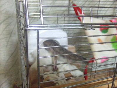 前日迄とっても元気で、うずらの卵程に大きくなってしまった腫瘍を下げても金網をガシガシしていたのですが、余程邪魔になったのでしょう、腫瘍の付け根を噛み切ろうとして。異変に気が付いて、よく頑張ったね、もう、頑張らなくて良いからね。と声をかけてしまった飼い主です。