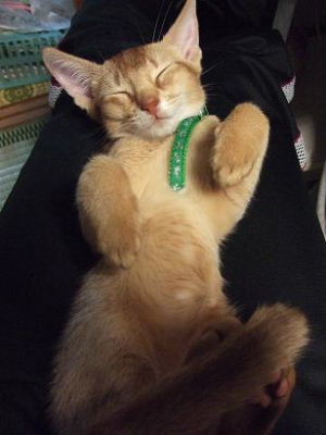 一方の睦月はというと、どんなに遊んでいても食器の触れ合う音がするとこの通り。ネコまっしぐらってCMが有ったけど、食事のたびに繰り返される光景です。さすがの睦月もこんな風にMioに抱かれて眠ってしまうと