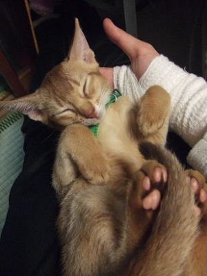 我が家のリーサル・ウェポン「ブラッシング攻撃」をかけ(音、大きくすると睦月のゴロゴロが聞こえます)