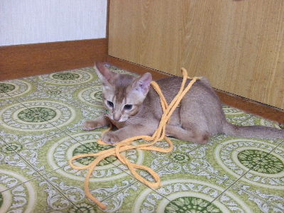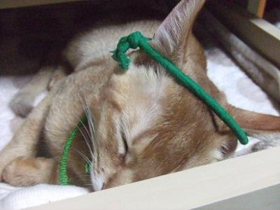 こんな調子で本日もやりたい放題でしたが、今日も寝不足にさせられてはかなわないので紐で散々遊ばせ