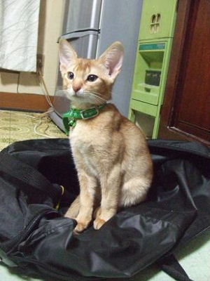 この箱に入って我が家へ来ました。帰りの車の中でも一切鳴かず、穴から手を出してMioと遊んでました。