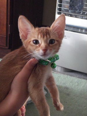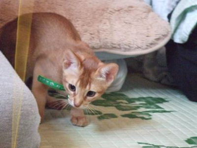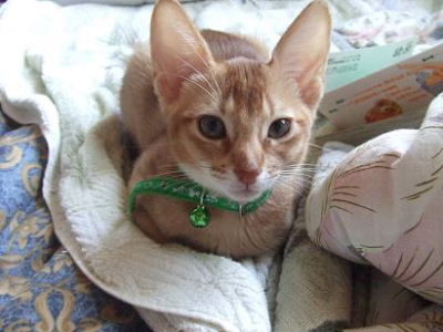 お迎えした日の睦月。小さくて、首輪が重そうです。