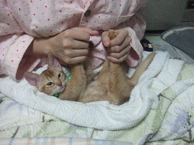 ペットショップで猫を買う(飼う?)事になるなんて、全く想像もしていなかったし、今まで2週間以上預かったり、保護した子はもっと小さくて、(姉・MaoやMioが小さいとき、よく拾って来たんです。保護して2~3日で、拾って来た子供達自身が近所や友人を苦労して廻ってちゃんと新しい飼い主さんを見つけましたが)睦月とは雰囲気からして違いました。何より、私が猫を飼った最後は、高校生の頃、エレベーターの中に捨てられていた2匹が最後で、それにあの頃は猫の予防接種とか、爪きりとか、シャンプーとか、こんなにしていなかった気がしています。逆に言えば、去勢、不妊手術だけだった様な・・・。まだまだのどかな時代だったんでしょうか?