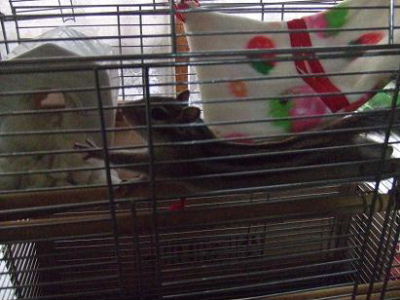 砂、餌等はお迎えと同時に購入したのですが、おもちゃ迄は頭が廻らず(ペットショップで睦月が利用していたおもちゃを箱に入れてくれていたのですが)こちらも急遽、間に合わせでMioが作製しました。