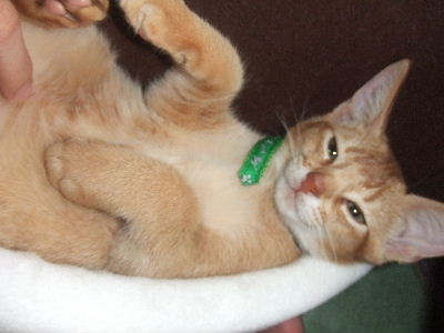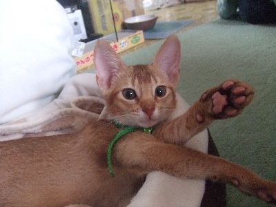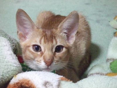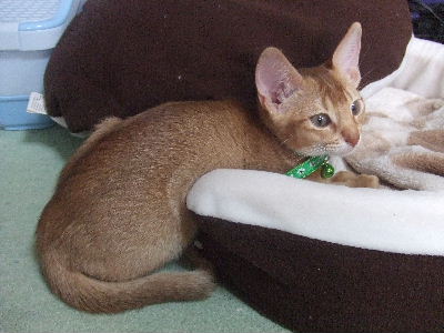 お迎えして4日後の睦月。この頃になるとやっと家に慣れてくれたのですが、トイレ、日に何度も失敗してました。ショップに居た時はちゃんとしてたのに。(ウン〇はトイレでしてましたが)何故か私のジャケットの上で何度も失敗してくれて、ペットショップへ使ってた砂を聞きに行ったり、いろんな猫飼いさんに相談したり・・・。(泣)