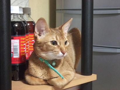晩になると偉そうな格好で飼い主に邪魔だからアッチへ行けと訴え・・・。