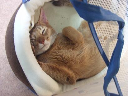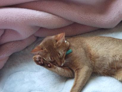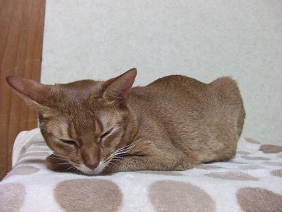 一方、はっちゃんはといえば本日もこんな格好でウトウトしていて(写真、ブレたので以前に撮影した物ですが)