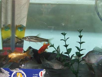 普段見分けのつかない水生生物達ですが、いつもは動きが早すぎてなかなか写真を撮らせてくれないのに、今回、タナゴ君達の一部と同居するド根性金魚、それから細長いモツ魚(本当の正式名称なのでしょうか?)