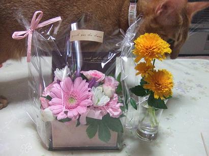 飼い主、めでたく〇3歳の誕生日を迎えることが出来ましたが、近所のお友達がお祝いにとお花をプレゼントしてくれて大感激! で、記念にし写真を撮ろうとしたら・・・