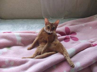お嬢さん、普段の日中はこのように普通の猫らしくしているのですが