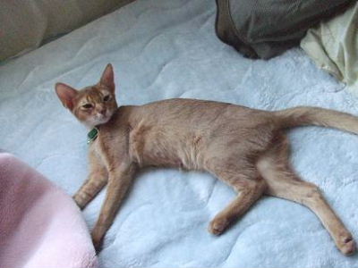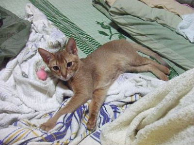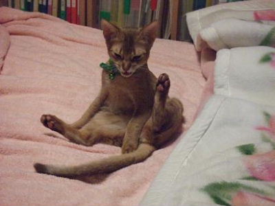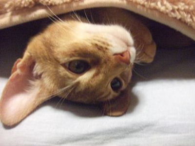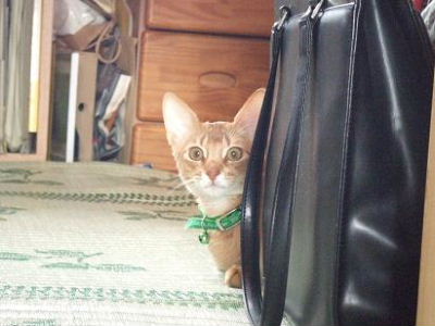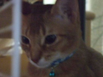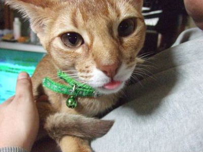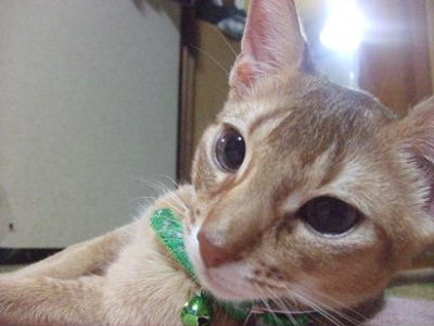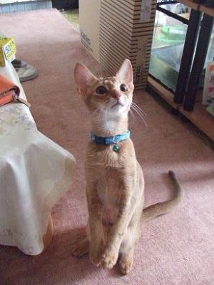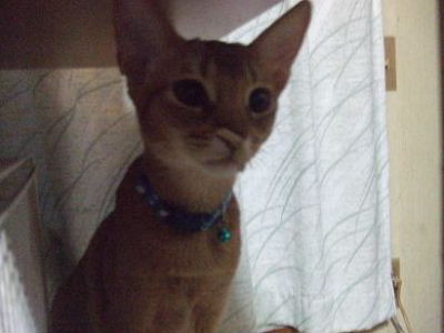 睦月、ドタバタ走るクーが気になって仕方無いようです。アビシニアンぽい格好かな?おとん、睦月は何色の首輪でもめんこいなぁ!と親バカ丸出しでした。