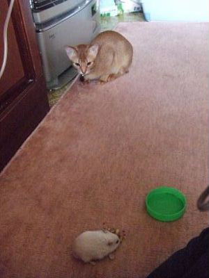 ネコ(アビシニアン)、スナネズミ、魚(タナゴ、モツギョ、金魚)、亀(ミドリガメx2)