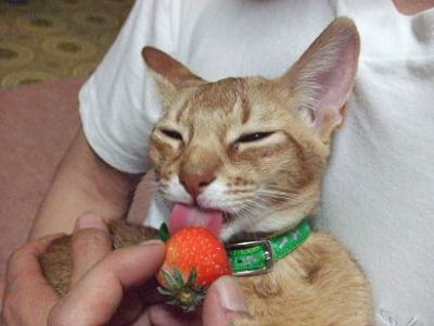 イチゴ、そろそろ取り上げようと思ったら、気配を感じたのかこの通りです。ったくう!