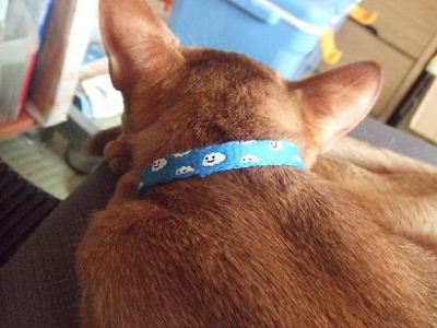 今日は睦月の首輪を新しい物に取り換えて(後向いて寝てますが)