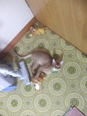 飼い主はトイレとゴハン、アニマルズの遊んだ後の片付けが担当ですが、おとん、Mio、お兄ちゃんは主に遊びを担当しています。ちょっと不公平かとも思いましたが・・・。
