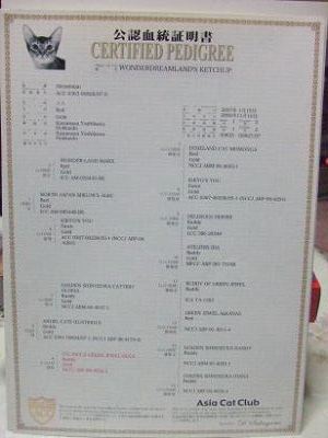 先日、睦月の血統書が郵送されて来ました。飼い主一家、血統書をまともに見たのは初めてで、家族揃ってきゃあぎゃあ大騒ぎ。睦月のお父さんはレッドで、お母さんはルディとか、兄弟は3匹(オス1、メス2)とか、細かい事が色々書いて有って、興味深かったです。